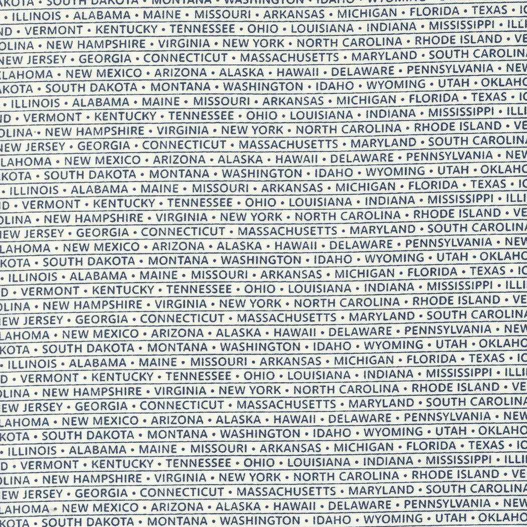 The American Gatherings II fabric collection from Moda Fabrics and designed by Primitive Gatherings is perfect for showing your love for the USA. The collection features patriotic motifs such as American flags, stars and stripes, and globes, along with floral prints and state names.