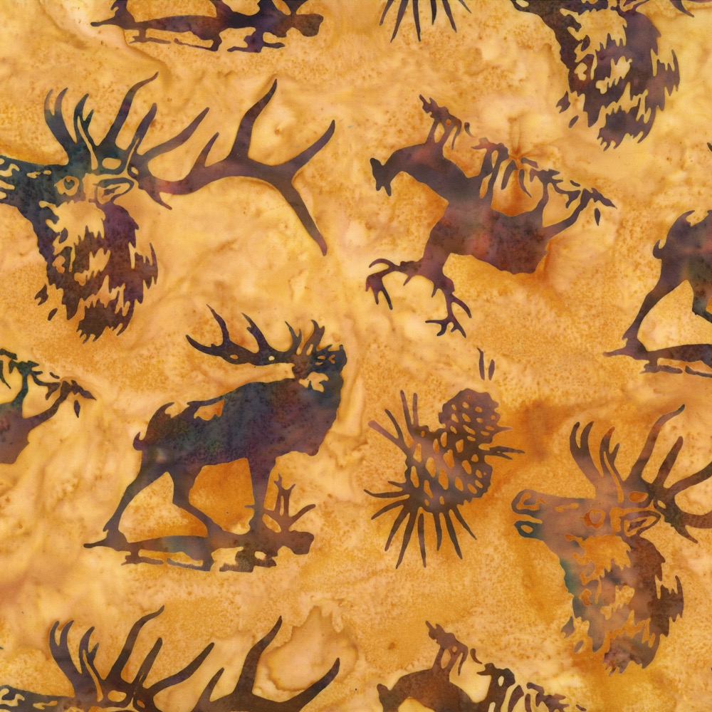 Elk on Amber Hoffman Batik Fabric 44/45″ wide