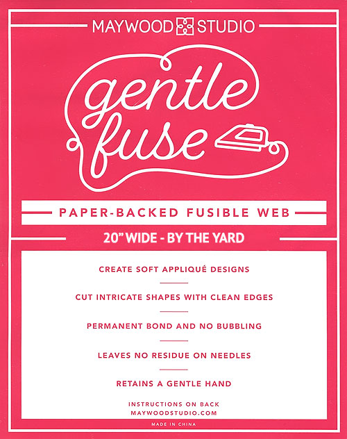 Create soft appliqué designs with Gentle Fuse, a paper-backed fusible web from Maywood Studio. It fuses to fabric in seconds to create a permanent bond, allowing you to cut out intricate shapes with clean, no-fray edges. Gentle Fuse is a perfect substitute for Soft Fuse, as it leaves no residue on sewing needles and retains a gentle hand. For best results, gently unroll and cut to size.