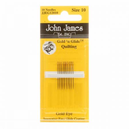 Needle slides effortlessly through fabric and batting. 14K gold eye for easy threading. 10ct. Innovative line of coated needles from the renowned John James of England.