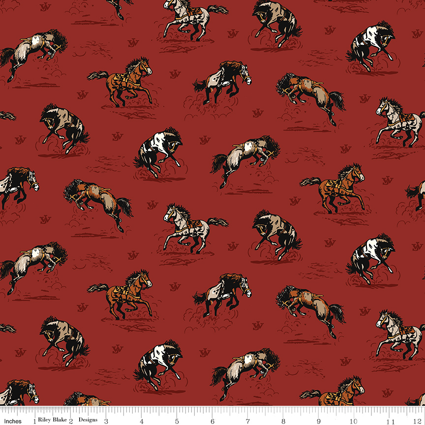 The John Wayne Courage collection for Riley Blake Designs is great for quilting, apparel and home decor. This print features cowboys and horses, cactus, rattlesnakes, saddles, the John Wayne logo, and more. Official licensed product.