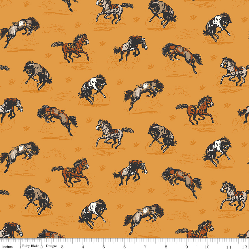 The John Wayne Courage collection for Riley Blake Designs is great for quilting, apparel and home decor. This print features cowboys and horses, cactus, rattlesnakes, saddles, the John Wayne logo, and more. Official licensed product.