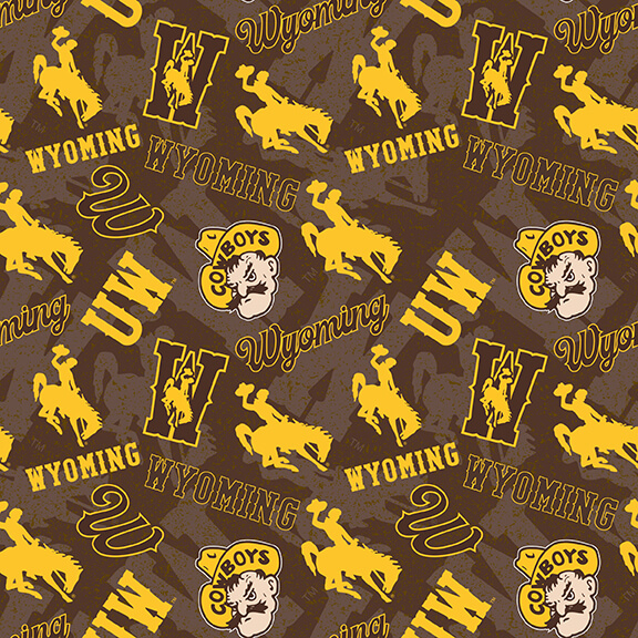 NCAA University of Wyoming Tone on Tone fabric featuring Steamboat and Pistol Pete. This gives quilters another option to add to their quilts, accessories or their stash. Fabric is by Sykel Studio a designer for Benartex Fabrics.