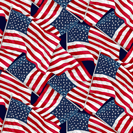 Patriotic inspiration is the theme of this new collection from Stephanie Marrott. Hearts’ Anthem features a large “home of the brave” panel, a repeating stripe of cuttable icons and overlapped flags, a non-directional “sampler-type” toss, and a flag collage along with coordinates.