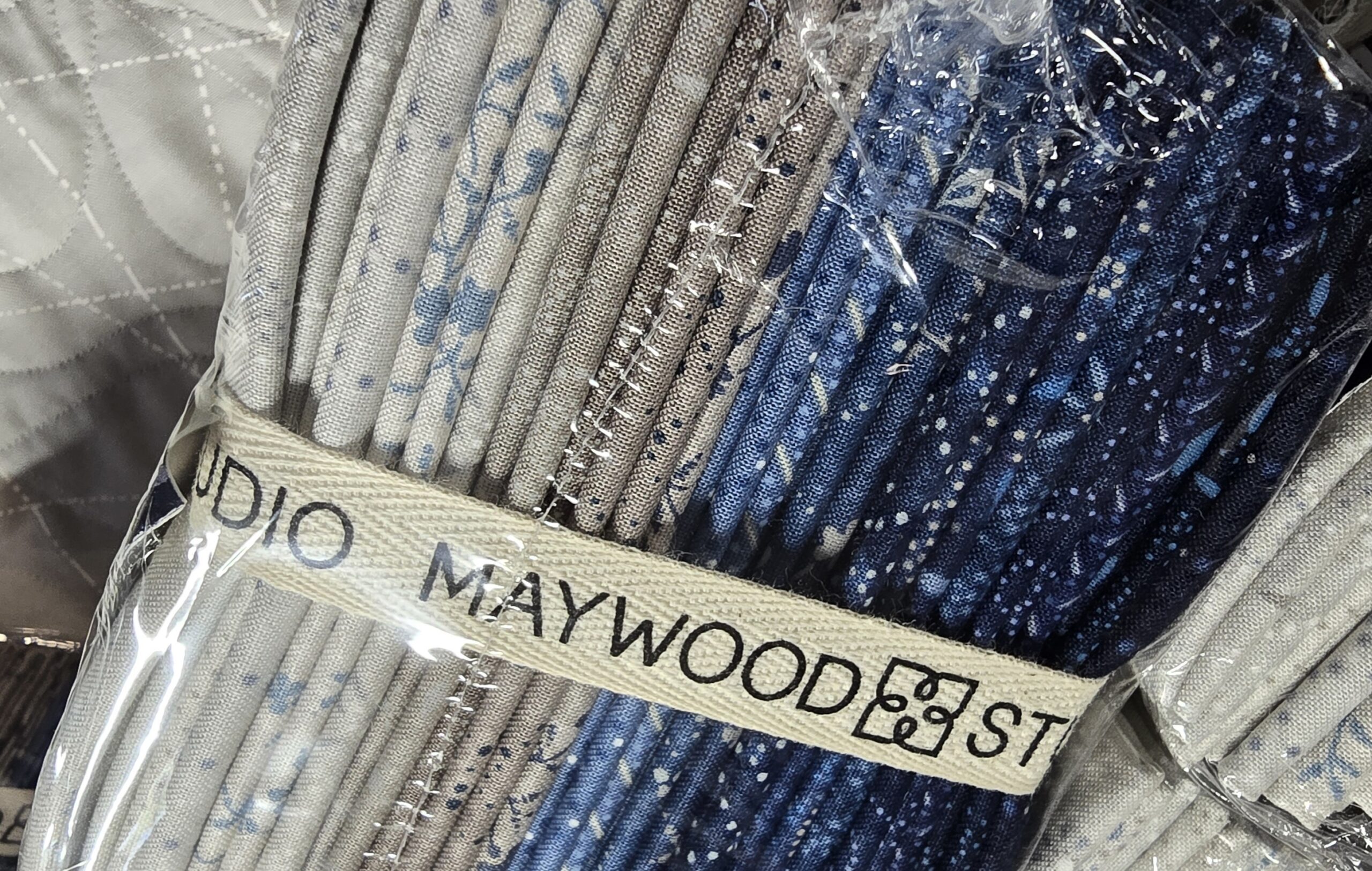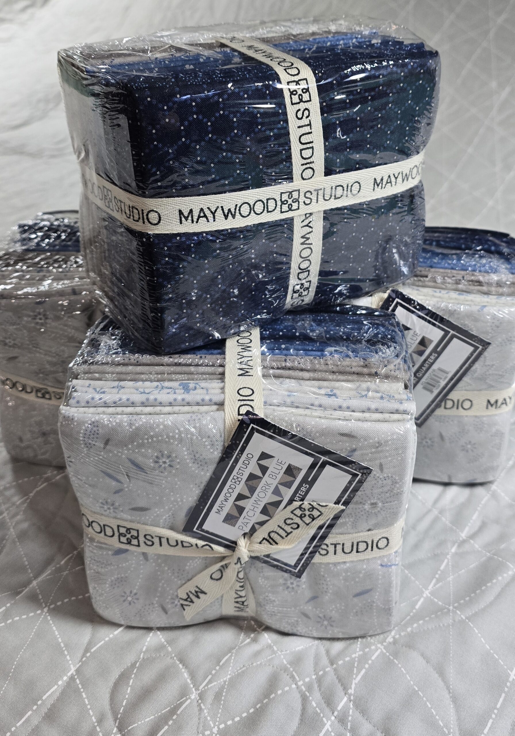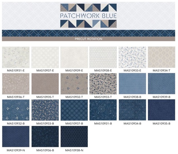 Patchwork Blue by Maywood Studio for EE Schenck Fabric Company is a nod to vintage patchwork quilts. Patchwork Blue brings together soft florals, indigo hues, and graphic geometrics in a scrappy yet harmonious mix. The palette of faded blues and neutral tones conjures the warmth of well-loved fabrics, while the diverse patterns give each piece a unique, handcrafted feel. Ideal for any season, this collection offers the perfect balance of comfort, nostalgia, and style. This is a fat quarter bundle of the 21 fabrics in the collection.