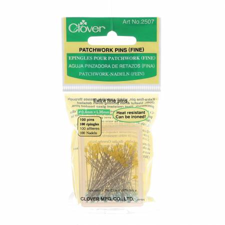 Extra-fine pins, which smoothly pass through fabric. Useful for precise pinning in delicate piecework and applique. The glass head pins are iron-proof.